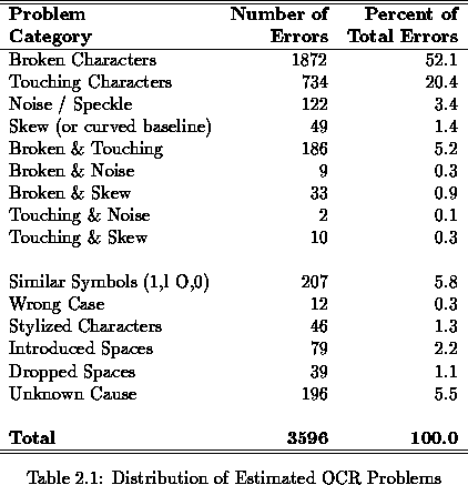 errors. Table 2.1 summarizes estimated OCR problems obtained from a