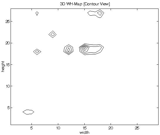 Figure 3.7: Width-Height Map (histogram and closed-contours views)